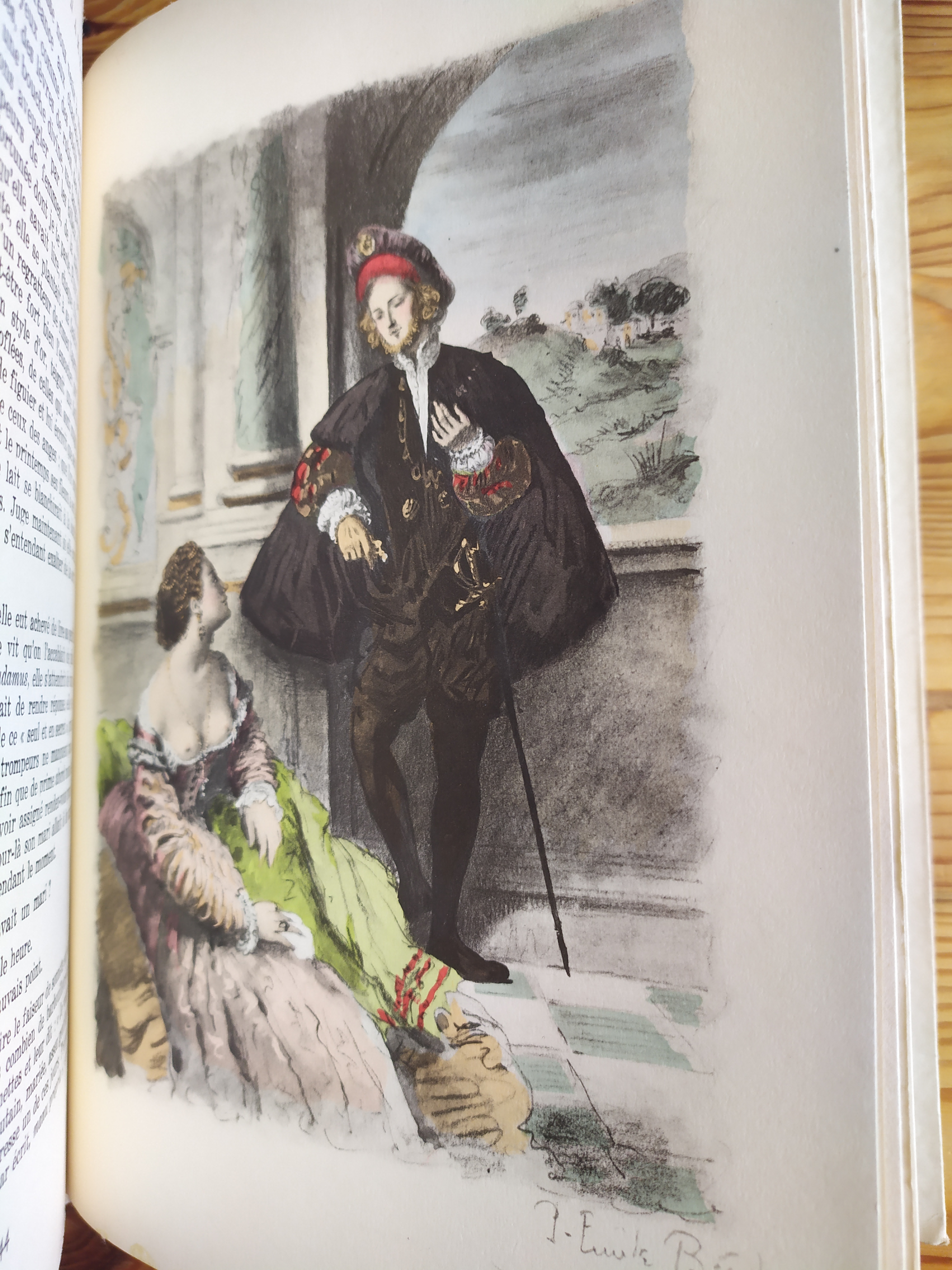 Bonne édition en tirage limité et justifié de ce roman des « Mœurs parisiennes », d’Alphonse Daudet. Il a paru en 1881, d’abord en plusieurs parties dans L’Illustration, puis en un volume à la Librairie Charpentier. L’auteur jugeait qu’il s’agissait de son récit le plus abouti : précédé d’une citation de son héros, le très méridional Numa Roumestan — « Pour la première fois, les Latins ont conquis la Gaule.» — le roman devait à l’origine s’intituler Nord et midi. Daudet y met en scène l’art de la parole politique, les illusions que créent les mots et les désillusions qui s’ensuivent. Le livre est illustré de très nombreuses compositions en couleurs d’après les aquarelles de Paul-Loÿs Armand, reproduites au pochoir. Cet illustré moderne constitue le quatrième volume de la « Collection Française », chez l’éditeur Henri Cyral.