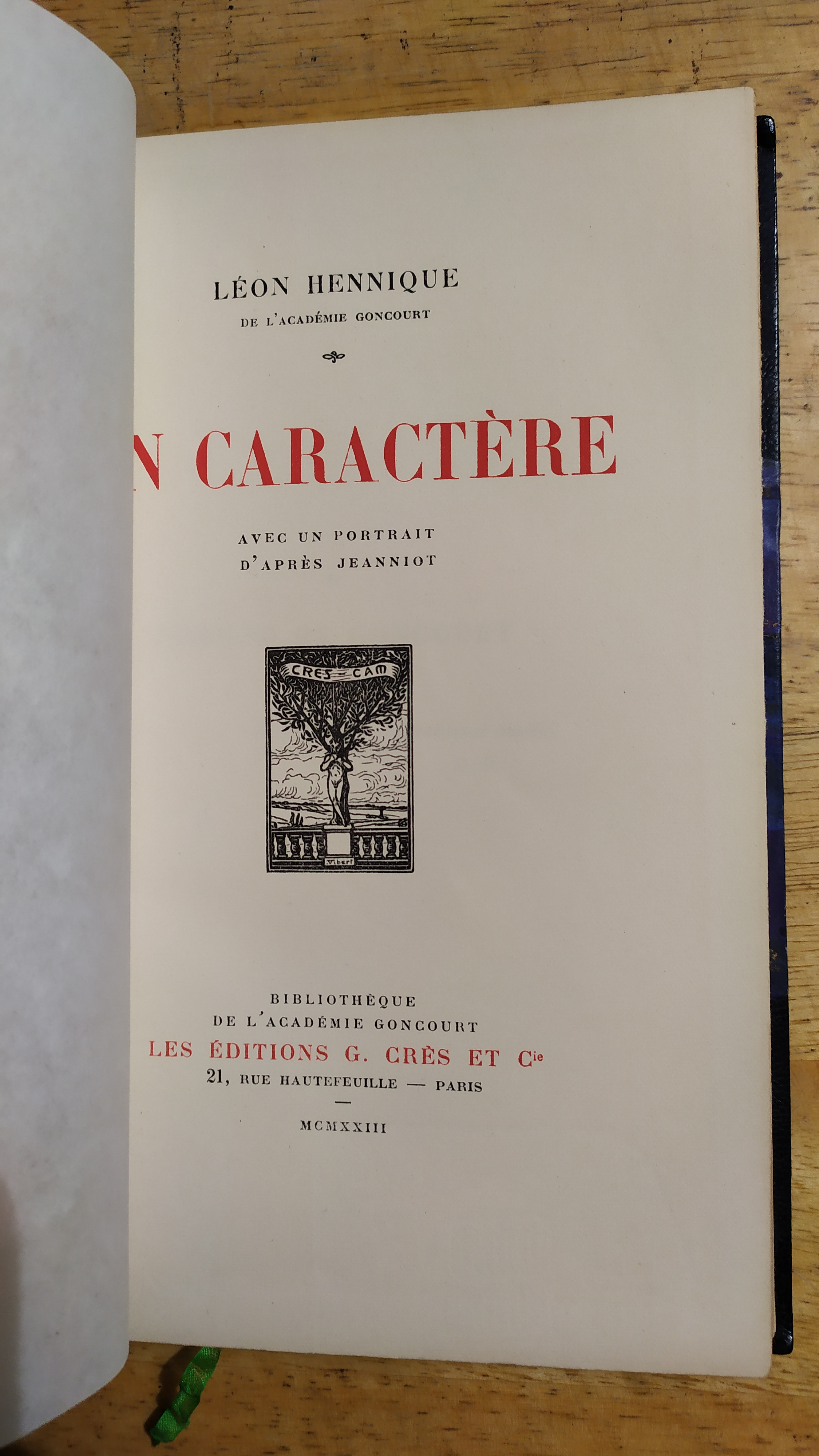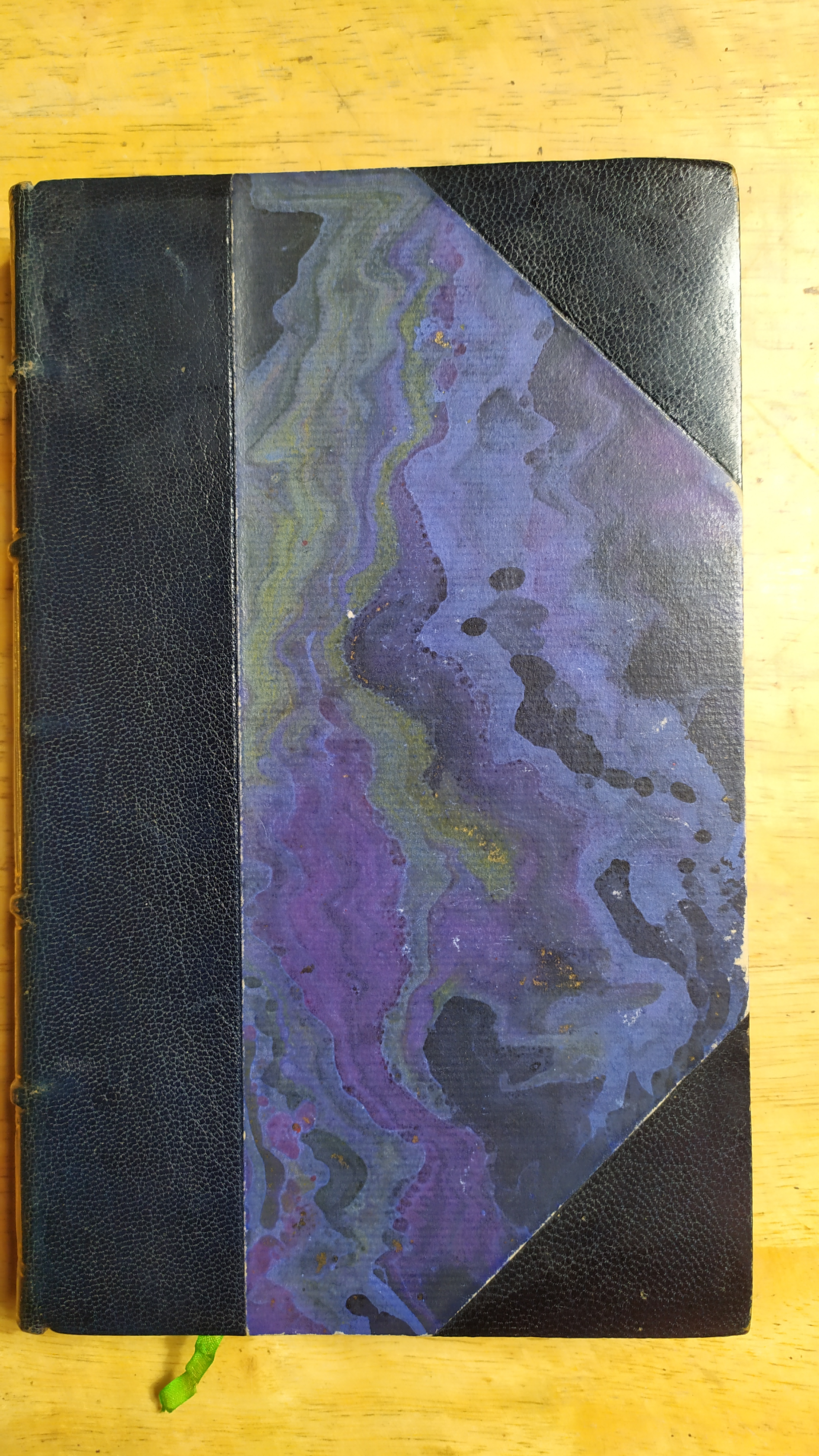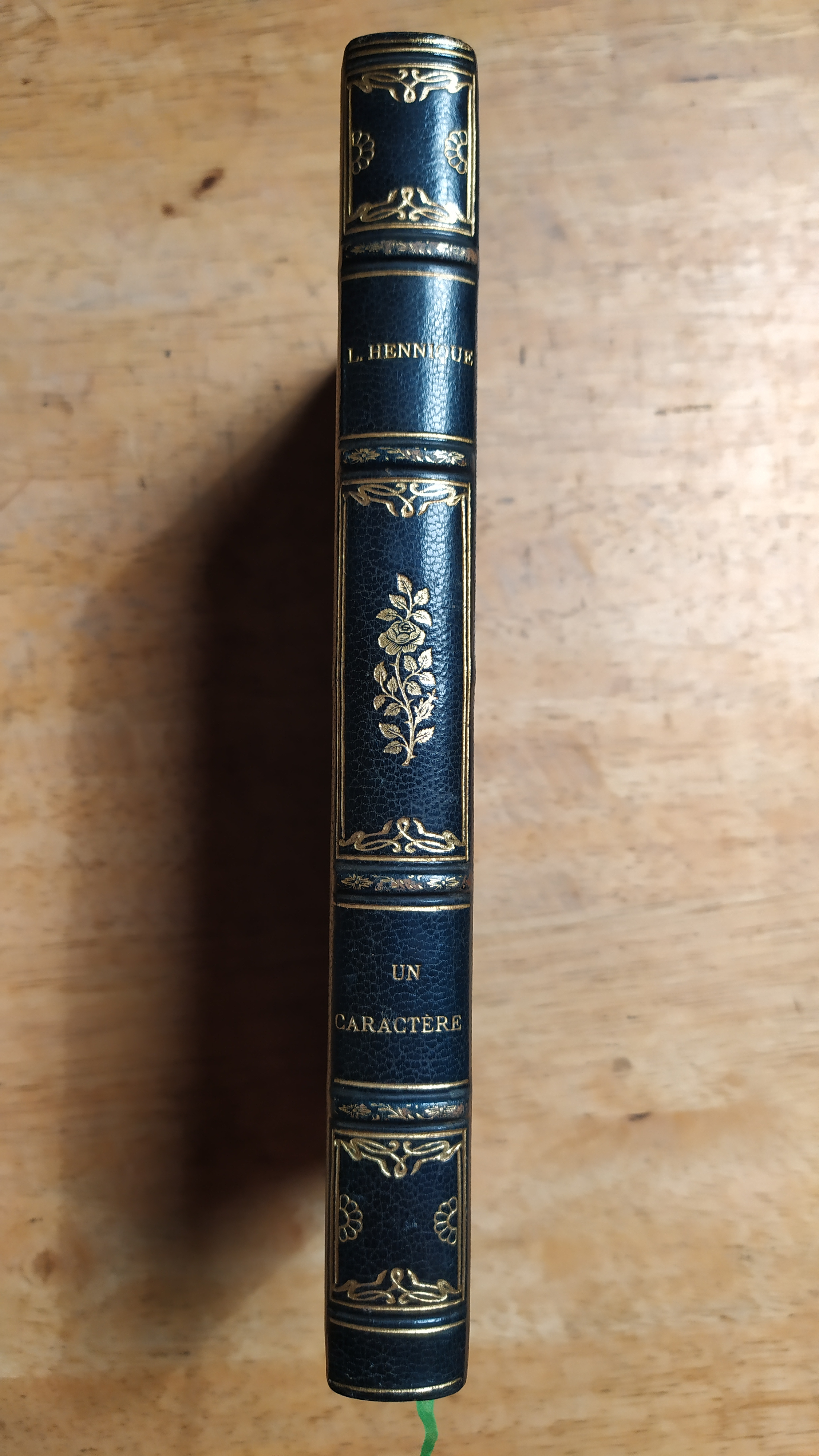 Un volume in octavo dans une demi-reliure en maroquin noir à coins. Dos à nerfs orné de fers, du titre et du nom de l'auteur dorés. Plats et gardes jaspés de bleu et assortis. Couverture d'origine conservée. Frottements mineurs à la reliure. Bel exemplaire numéroté sur pur fil Lafuma de ce titre peu commun.