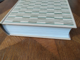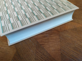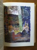 Un fort et grand volume in octavo dans une reliure de l’éditeur en skyvertex de couleur crème ornée d’un décor géométrique polychrome d’après une maquette originale de Hollenstein. 32 illustrations hors-texte en couleurs d’après les aquarelles originales de Walter Spitzer, Bernadette Kelly, Michel Ciry, Guy Bardone et Yves Brayer (ce dernier pour Le Lion). Notes de l’auteur. Typographie soignée. Exemplaire numéroté sur Vélin Plumex. Ors du décor de la reliure oxydés, plats tachés (par l’oxydation au contact du rhodoïd). Étui d’origine en carton rigide de couleur bleue assortie aux pages de gardes présent, mais frotté. 722 pages.