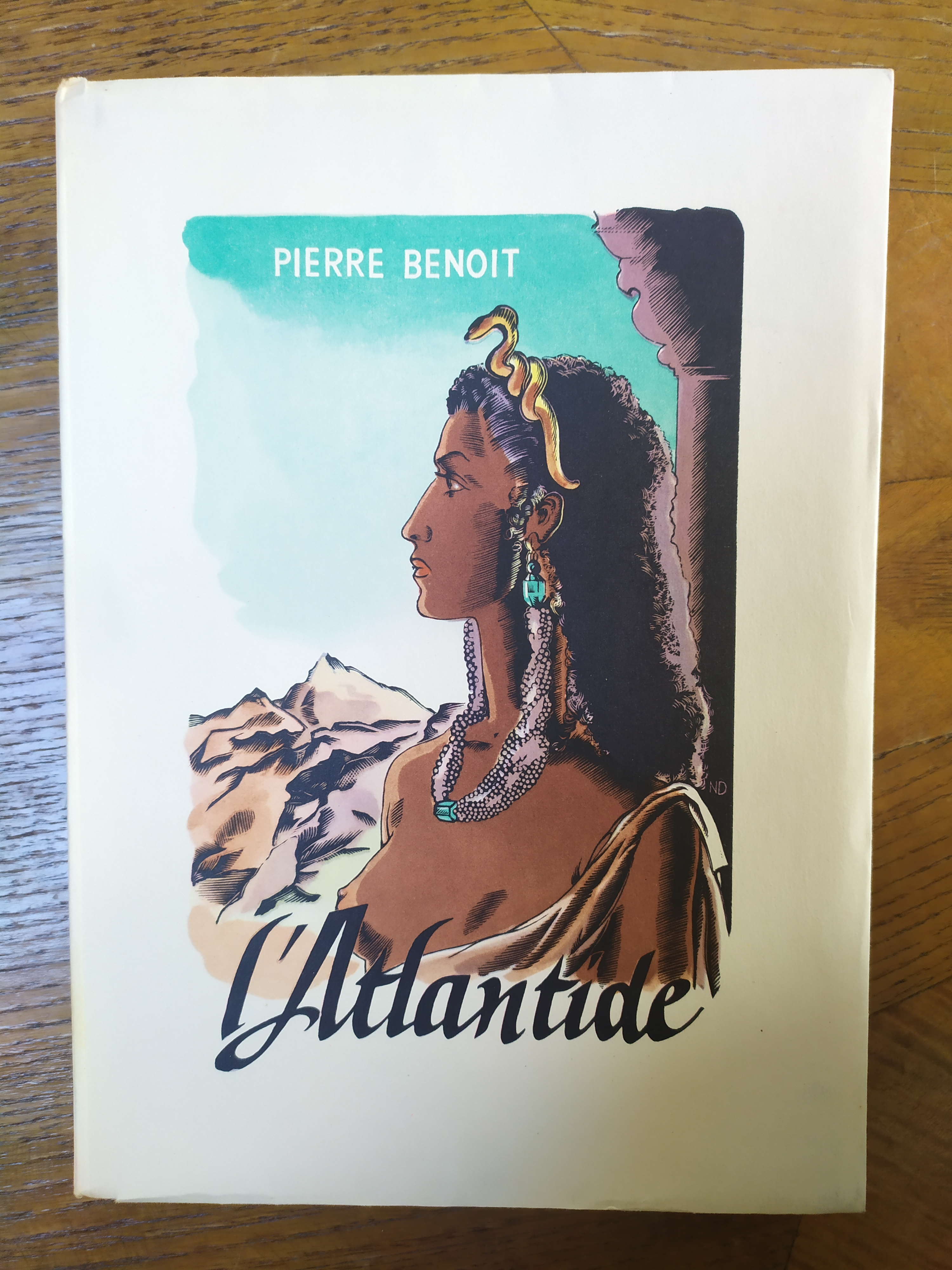 Exemplaire bien relié de cet illustré des années 30, L’Atlantide de Pierre Benoit, roman d’anticipation et d’aventures mâtinées d’Orient est ici agrémenté de douze compositions hors-texte d’après les aquarelles originales de Charles Fouqueray qui ont été reproduites en gravure et coloriées au pochoir (dans le style orientaliste). Ce volume appartient à la célèbre collection « Byblis » qui a d’abord paru chez Simon Kra, puis chez Plon. L’Atlantide, qui est probablement le plus grand succès de Pierre Benoit, a obtenu le grand prix du roman de l’Académie française en 1919.