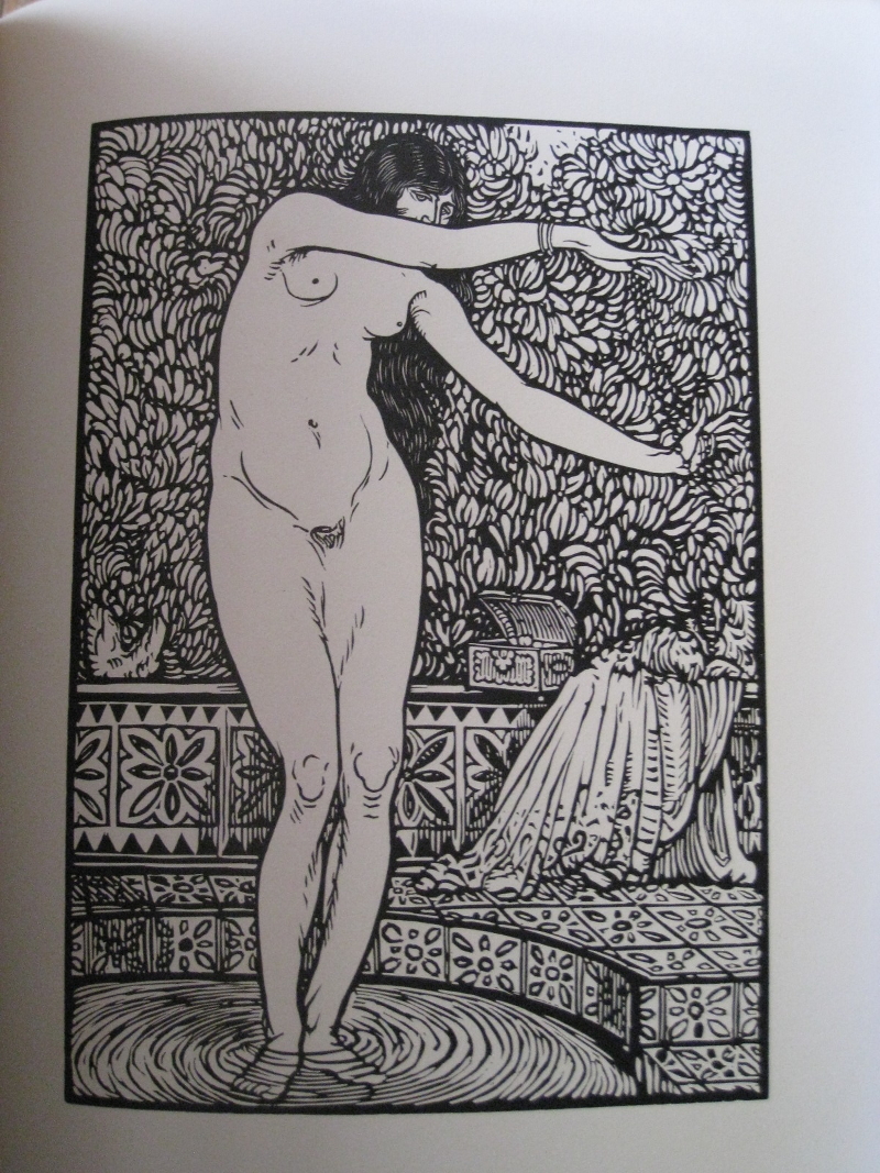 Première édition illustrée, à la typographie soignée et à faible tirage, réalisée en 1927 par Léon Pichon, de ce curieux texte d’Hugues Rebell qui a paru au Mercure de France en 1896. Il est ici illustré de vignettes gravées sur bois par Fernand Siméon.