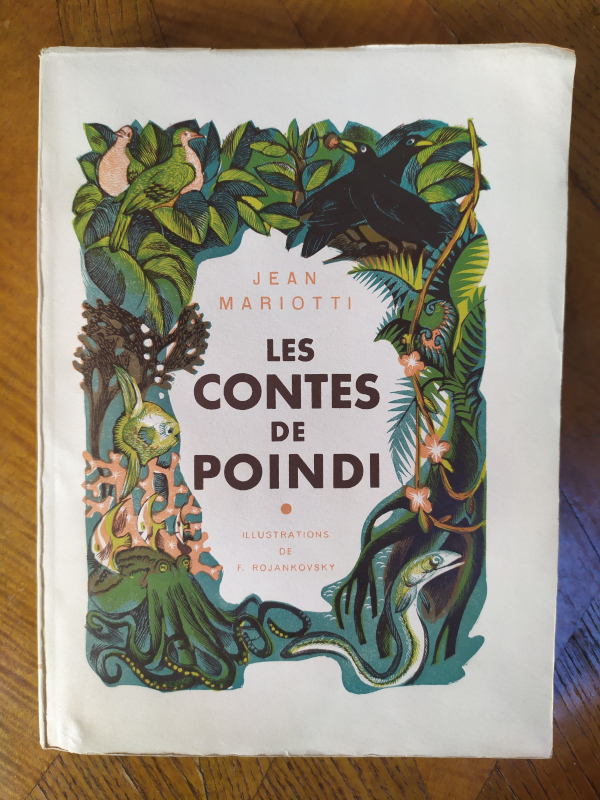 Ces contes de Guy de Pourtalès sont ici joliment illustrés en noir de dessins in-texte et en marge d'Eliane Bonabel. Gardes illustrées. Page de titre imprimée en bleu et noir. Cette réédition rare au format in-4 vertical est un des premiers cartonnages illustrés de la N.r.f., dont la maquette est ici due à Colette Duhamel (cf. Huret, les « incunables »). Exemplaire d'un tirage justifié à 1040 sur vélin de Condat.