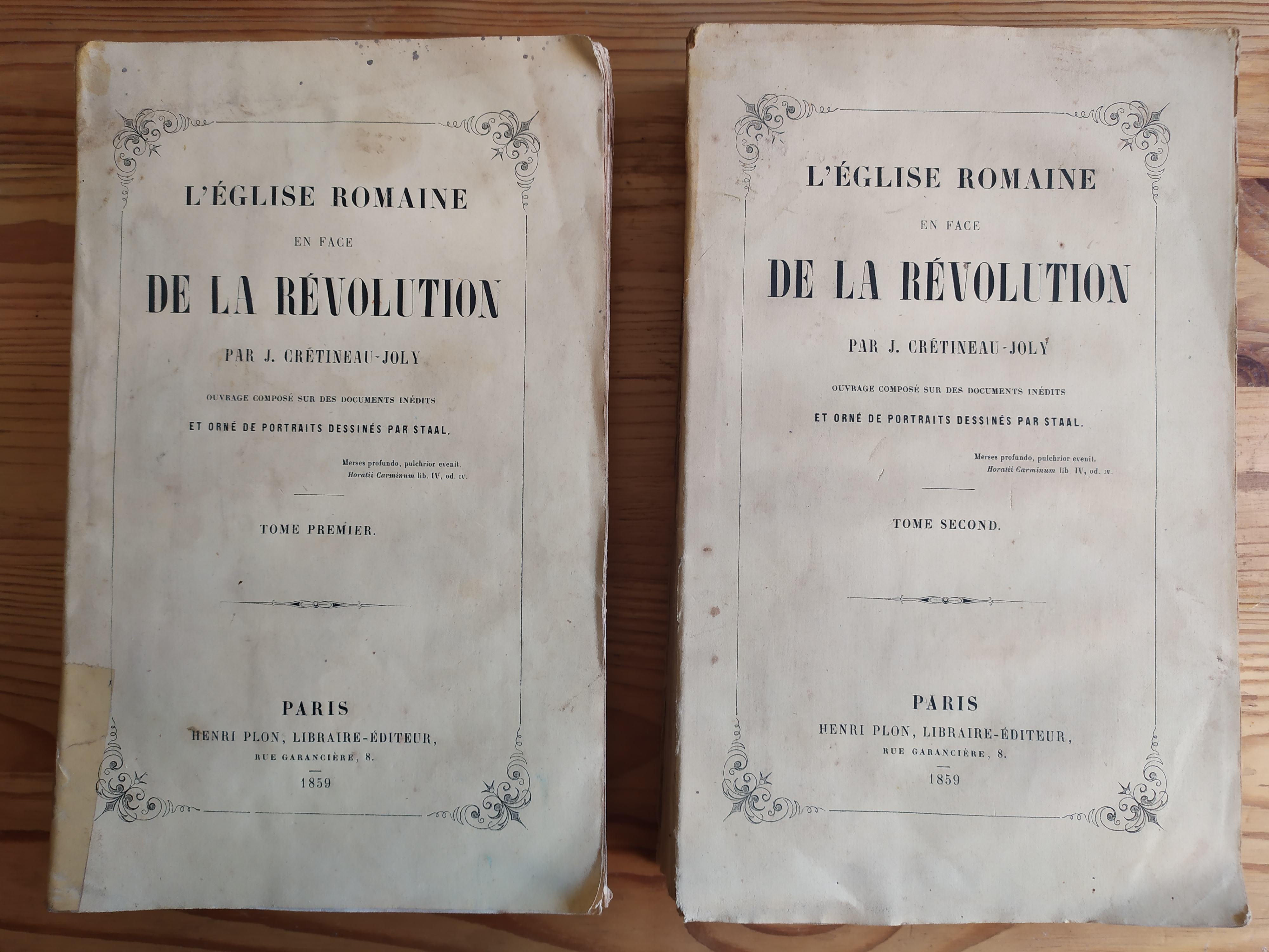 Chacune des biographies de gens d'Église qui composent ce volume faisait l'objet d'une livraison à part : elle est en un cahier qui a sa propre pagination. L'ensemble constitue la première série de ces livraisons qui est ici reliée dans un cartonnage de l'éditeur en pleine toile rouge décorée.