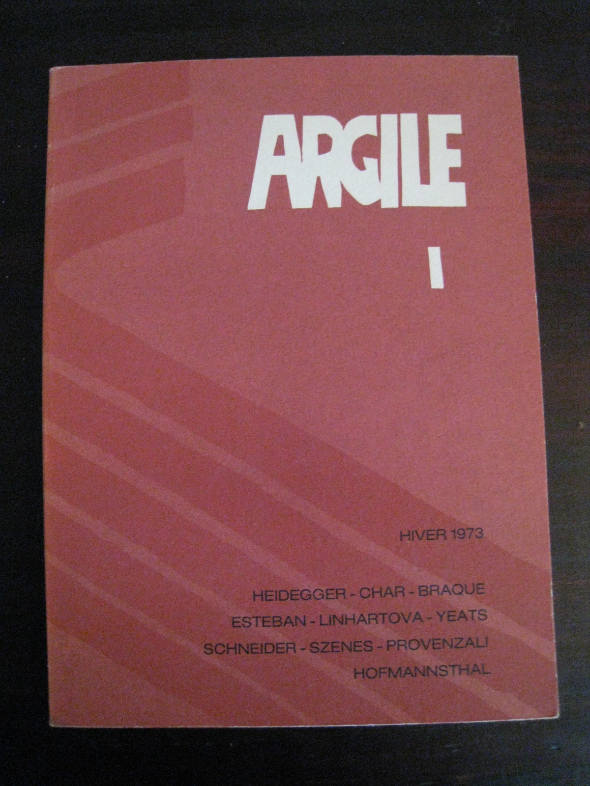 «J’aimerais rappeler aussi, de mon côté, quel fut le rôle d’Esteban dans l’histoire de la poésie des années 70, comme rassembleur et découvreur de puissantes paroles qu’ont recueillies les vingt-quatre numéros de la revue Argile, dont il fut le directeur, depuis l’hiver 1973 jusqu’à la dernière livraison du printemps 1981 dont le sommaire comportait, entre autres, un hommage à Christian Dotremont. J’ai là sous mes yeux la presque totalité de cette collection, publiée par les soins de Maeght Éditeur, avec cette belle et sobre couverture de Raoul Ubac dont seule la couleur changeait à chaque fois. Le secrétaire de rédaction fut jusqu’à la fin Jean-Claude Schneider, que rejoignit, dès 1978, Noëlle Réveillaud. Argile est un exemple magnifique de ce qu’une revue de poésie peut révéler, non seulement de l’activité de la poésie à une époque, mais, plus largement, de la vie culturelle et artistique de cette époque, de ses obsessions et de ses ressources, comme aussi bien du rapport étroit que la création poétique entretient avec les autres arts : la peinture, la philosophie, en particulier, ainsi qu’avec le domaine étranger. C’est dans Argile, par exemple, que j’ai lu mes premiers textes de Mandelstam, de Linhartova, de Silvia Plath, de Quasimodo, de Walser... Comme aussi bien de Guez-Ricord, de Jean-Luc Nancy ou d’Anne-Marie Albiach...» Jean-Marie Barnaud.