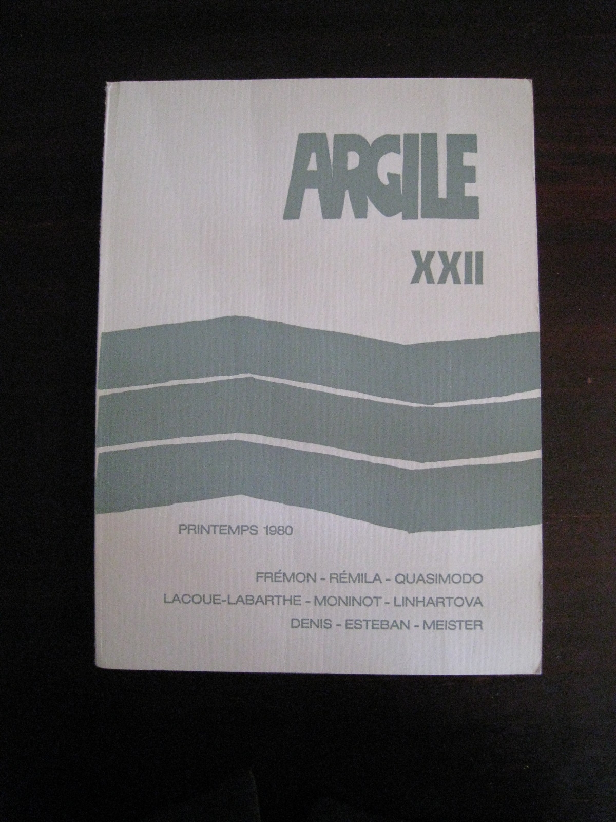 «J’aimerais rappeler aussi, de mon côté, quel fut le rôle d’Esteban dans l’histoire de la poésie des années 70, comme rassembleur et découvreur de puissantes paroles qu’ont recueillies les vingt-quatre numéros de la revue Argile, dont il fut le directeur, depuis l’hiver 1973 jusqu’à la dernière livraison du printemps 1981 dont le sommaire comportait, entre autres, un hommage à Christian Dotremont. J’ai là sous mes yeux la presque totalité de cette collection, publiée par les soins de Maeght Éditeur, avec cette belle et sobre couverture de Raoul Ubac dont seule la couleur changeait à chaque fois. Le secrétaire de rédaction fut jusqu’à la fin Jean-Claude Schneider, que rejoignit, dès 1978, Noëlle Réveillaud. Argile est un exemple magnifique de ce qu’une revue de poésie peut révéler, non seulement de l’activité de la poésie à une époque, mais, plus largement, de la vie culturelle et artistique de cette époque, de ses obsessions et de ses ressources, comme aussi bien du rapport étroit que la création poétique entretient avec les autres arts : la peinture, la philosophie, en particulier, ainsi qu’avec le domaine étranger. C’est dans Argile, par exemple, que j’ai lu mes premiers textes de Mandelstam, de Linhartova, de Silvia Plath, de Quasimodo, de Walser… Comme aussi bien de Guez-Ricord, de Jean-Luc Nancy ou d’Anne-Marie Albiach…» Jean-Marie Barnaud.