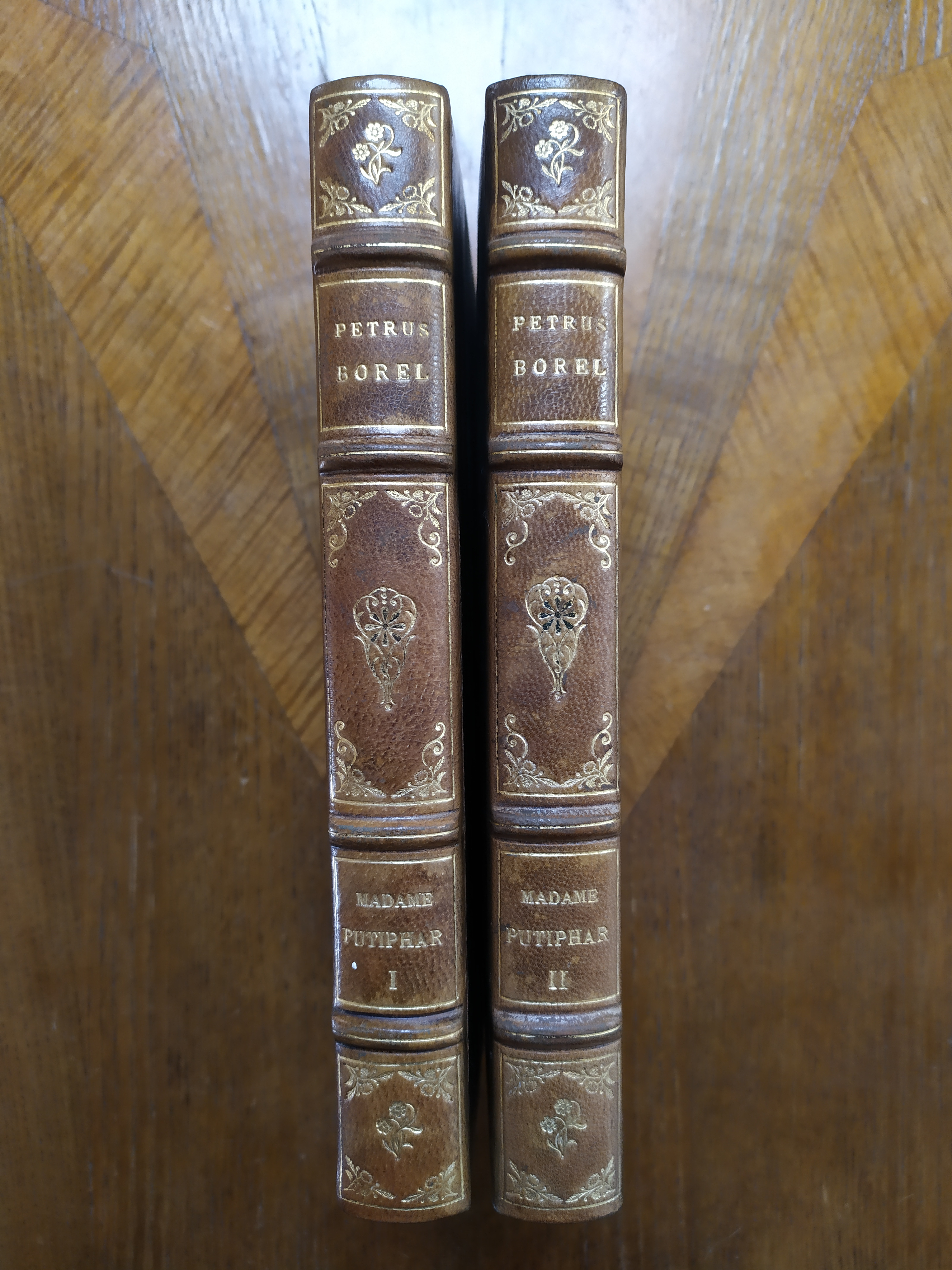 Deux volumes in octavo dans une demi-reliure en chagrin vert. Plats couvert de papier à la cuve. Gardes assorties. Ex-libris gravé contrecollé sur la première d'entre elles pour chaque tome. Plats de la couverture papier d'origine conservés. XXII-287 et 307 pp. Dos insolés (décolorés). Quelques rares taches.