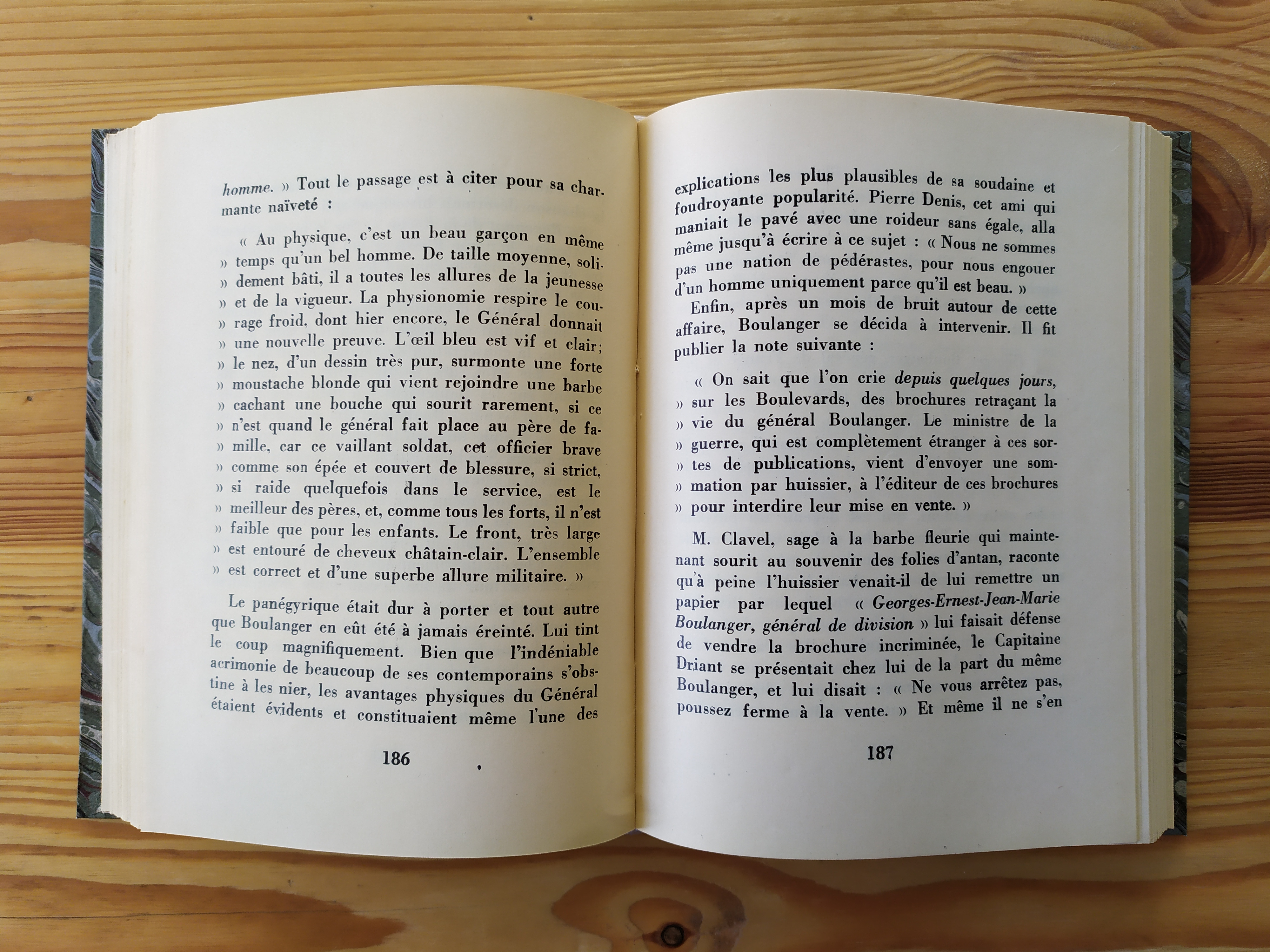Georges Ernest Jean-Marie Boulanger, fils d’un bourgeois breton et d’une aristocrate galloise, entre à Saint-Cyr, puis participe à plusieurs campagnes miitaires dans lesquelles il s’illustre, pour devenir, en 1880, le plus jeune général de l’armée française. Populaire parmi les troupes, il devient Ministre de la Guerre, en 1886, à l’instigation de Georges Clémenceau, avec lequel il avait suivi les cours du Lycée de Nantes. Très hostile a l’Allemagne et habitué des coups d’éclat contre la puissance ennemie, son implication dans une affaire d’espionnage non autorisé par l’État séduit les nationalistes (Maurice Barrès), faisant de lui le « Général Revanche ». Ses discours belliqueux, au centre desquels se trouvent la patrie et le peuple, servis par une prestance hors du commun mais aussi par les mesures qu’il fait adopter, accroissent encore sa popularité. Écarté du gouvernement en 1887, Il se trouve ainsi paradoxalement soutenu à la fois par les Bonapartistes, des Monarchistes (dont la Duchesse d’Uzès) et une partie de la gauche et l’extrême-gauche (dont Alfred Naquet), étant devenu de fait le porte-voix de tous ceux qui sont insatisfaits de l’ordre établi. Anti-parlementaire, virulent à l’encontre de la bourgeoisie au gouvernenement, Il propose alors en guise de programme la mise en place d’une Assemblée constituante et se trouve à la tête d’un véritable mouvement politique, pour l’essentiel centré autour de sa figure contestataire (le Boulangisme). Il parvient à présenter des candidats dans chaque département et entre lui-même à la Chambre en 1888. Le 27 janvier 1889, il se présente à Paris et remporte l’élection. Certains de ses soutiens, comme le radical Alfred Naquet, lui suggèrent alors de marcher sur l’Élysée et d’effectuer un coup d’État, ce qu’il se refuse à faire. Les cris des « Boulangistes » servent d’ailleurs de bruit de fond au roman Là-Bas, de Huÿsmans, écrit à ce moment.