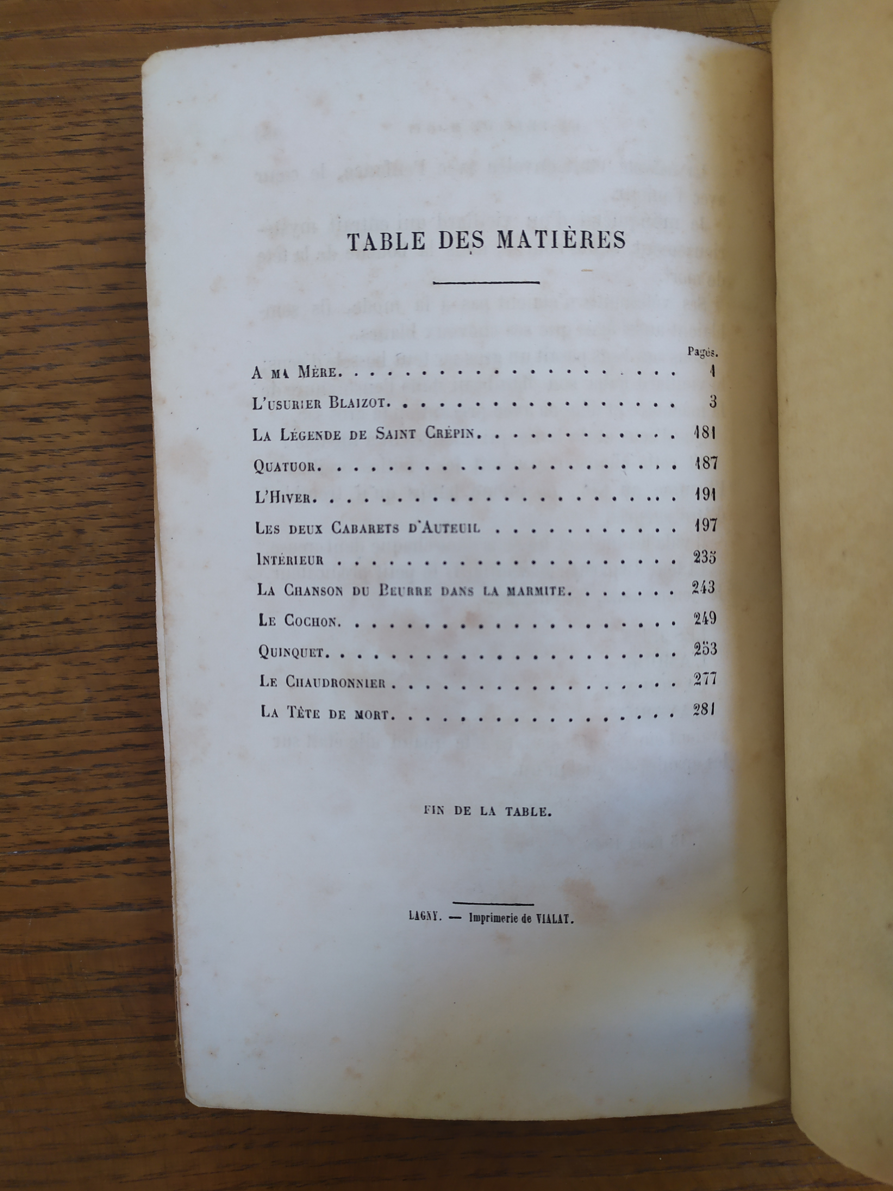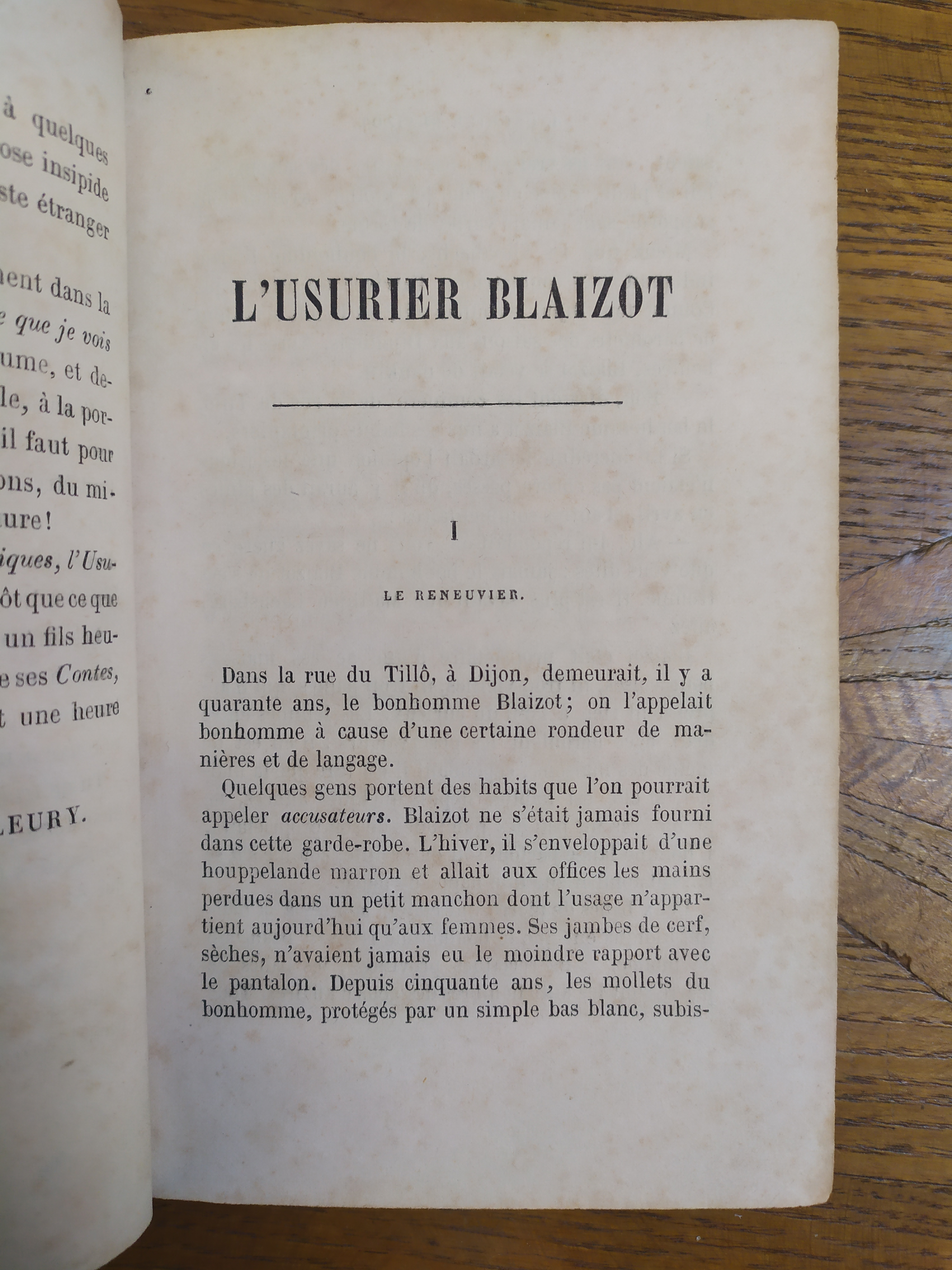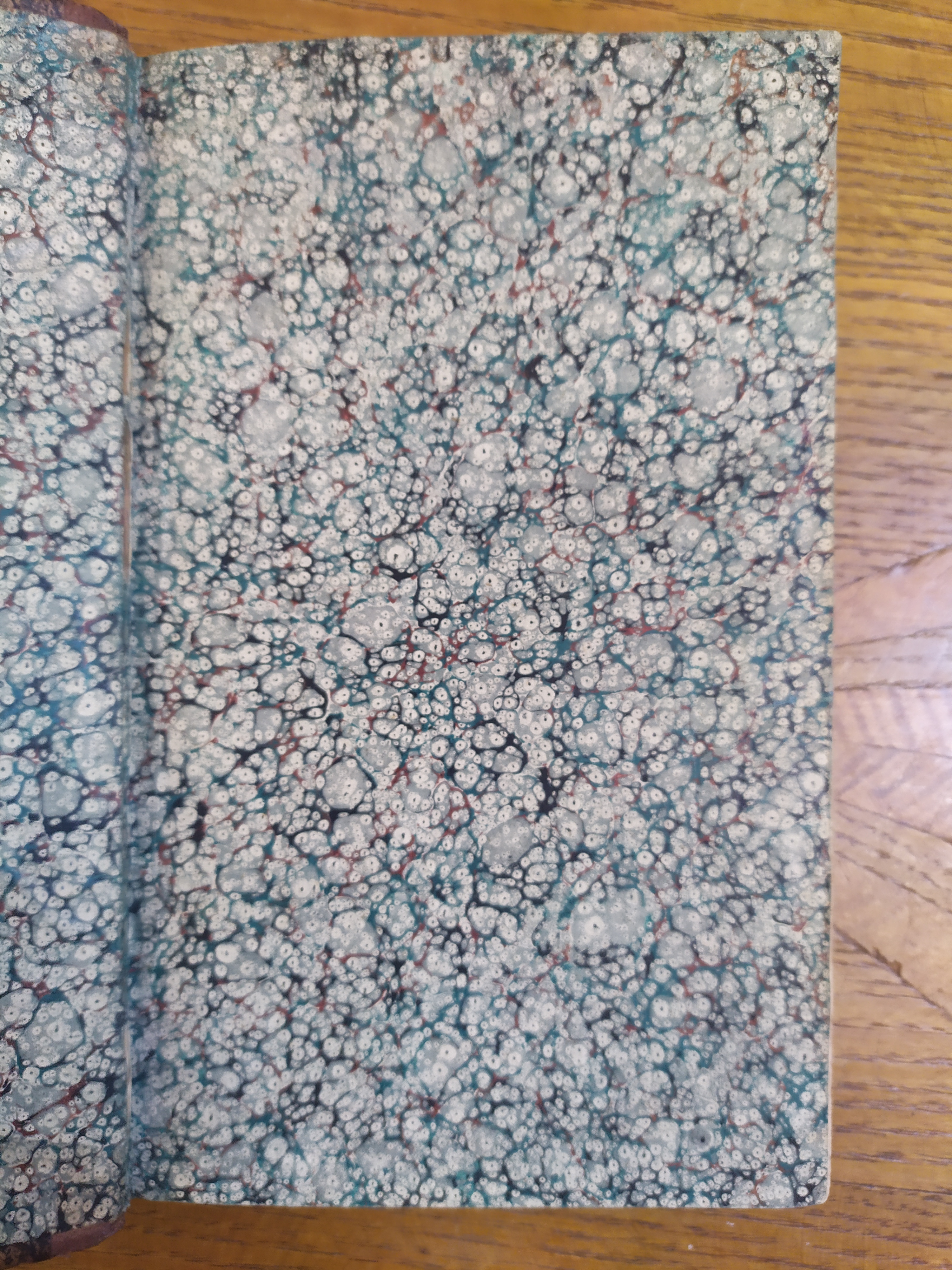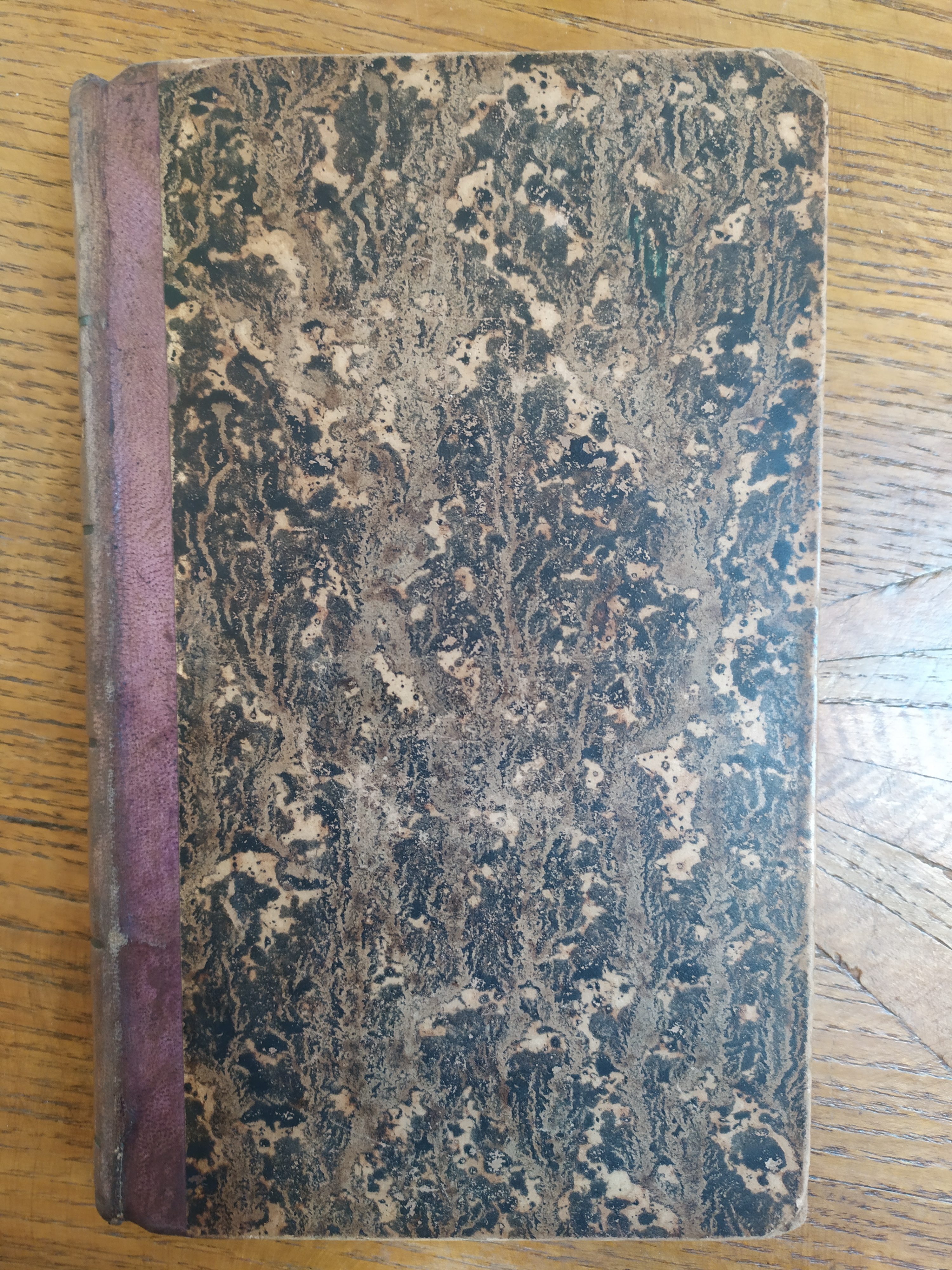 Un volume grand in-18 dans une demi-reliure à la bradel en maroquin brun. Dos lisse orné de filets noirs, du titre et du nom de l'auteur dorés. Gardes jaspées. Reliure usée, frottée, coiffes talées, coins émoussés. Rousseurs., Exemplaire de condition modeste, demeurant de bonne tenue.