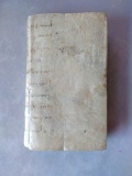 Petits frottements à la reliure, un manque à la coiffe supérieure, quelques feuillets coupés trop courts (avec une petite atteinte au caractères de fin de ligne du texte, qui demeure cependant lisible). Sinon, bon exemplaire.