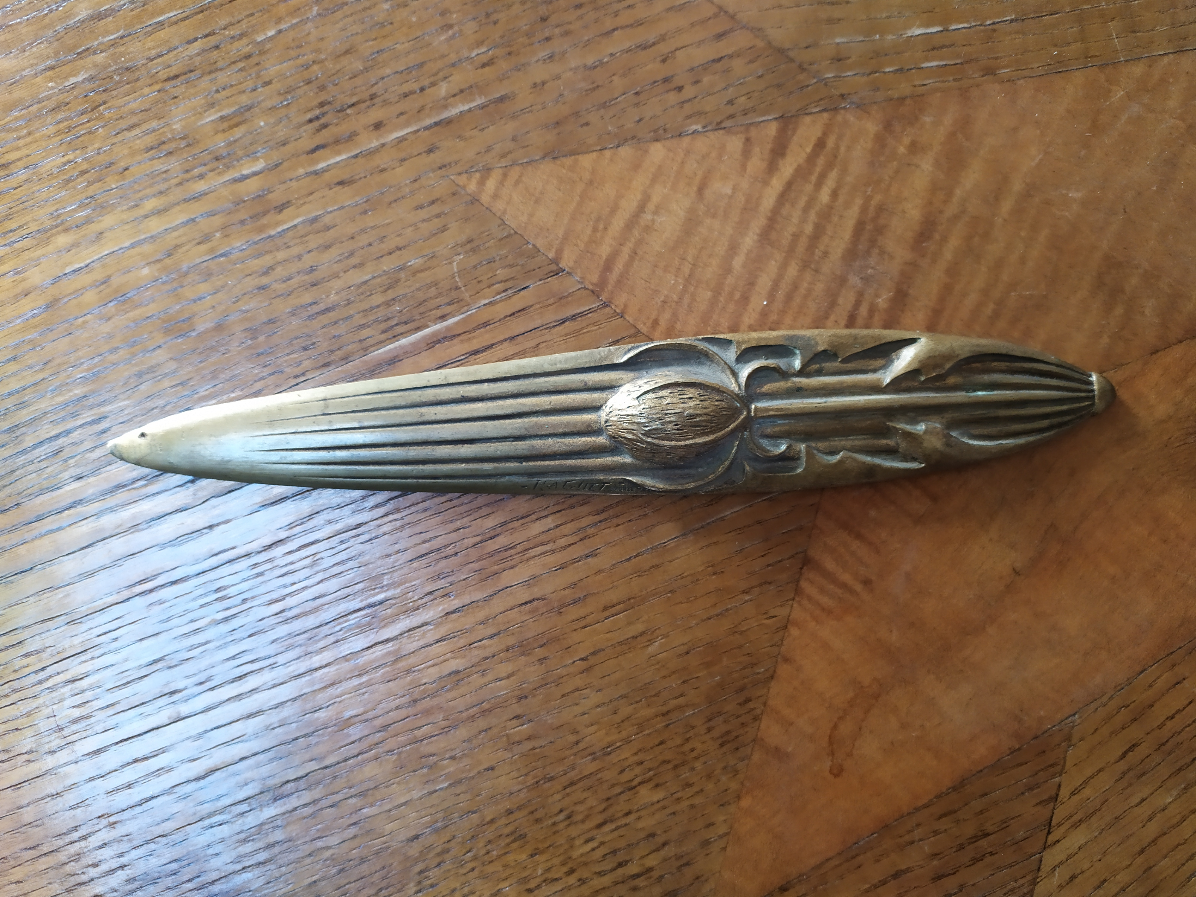 Sans marque, avec une signature, travail français vraisemblablement du début du vingtième siècle, peut-être des années 1910. Pointe légèrement émoussée (défaut visible sur la deuxième photographie).