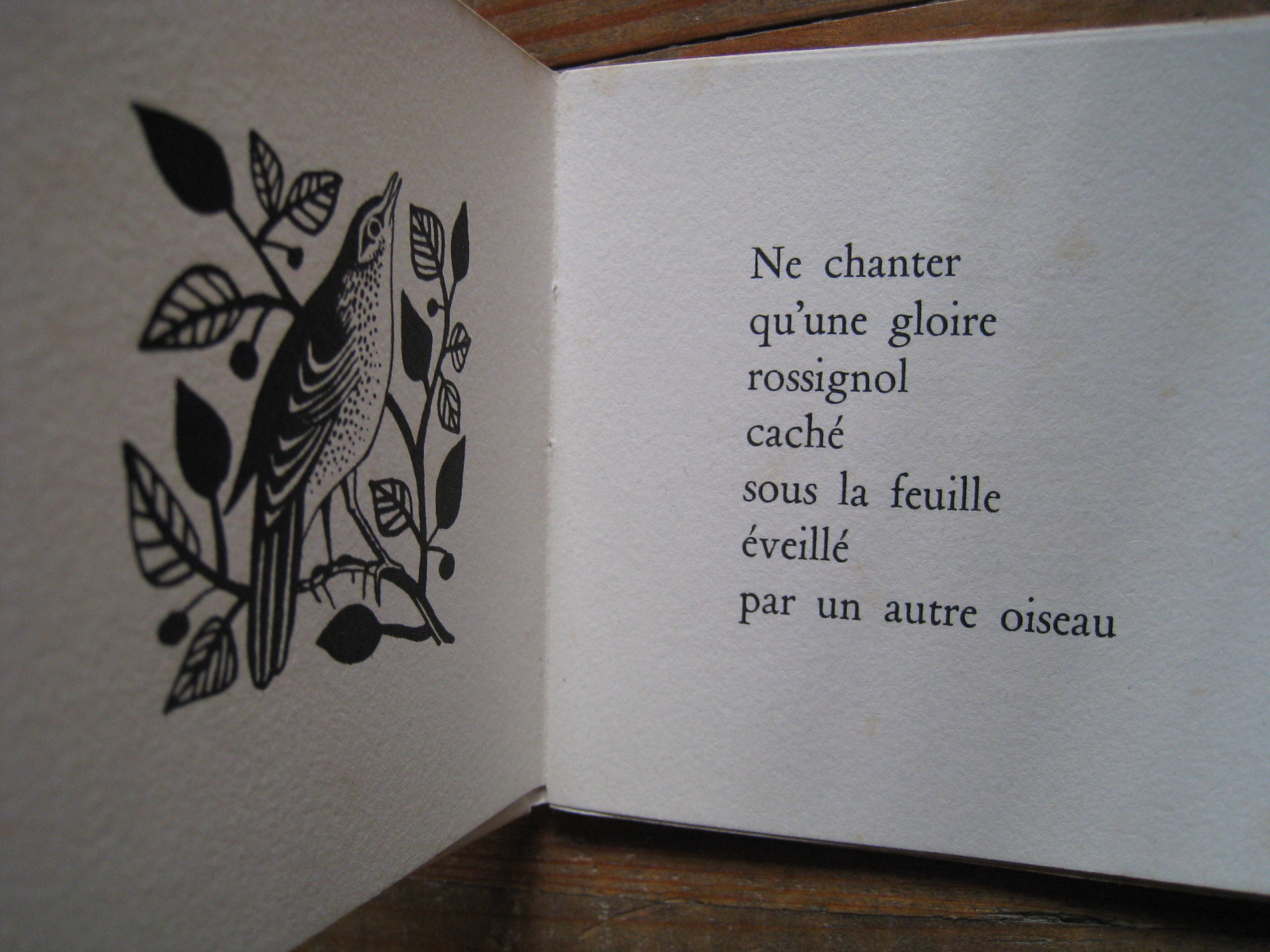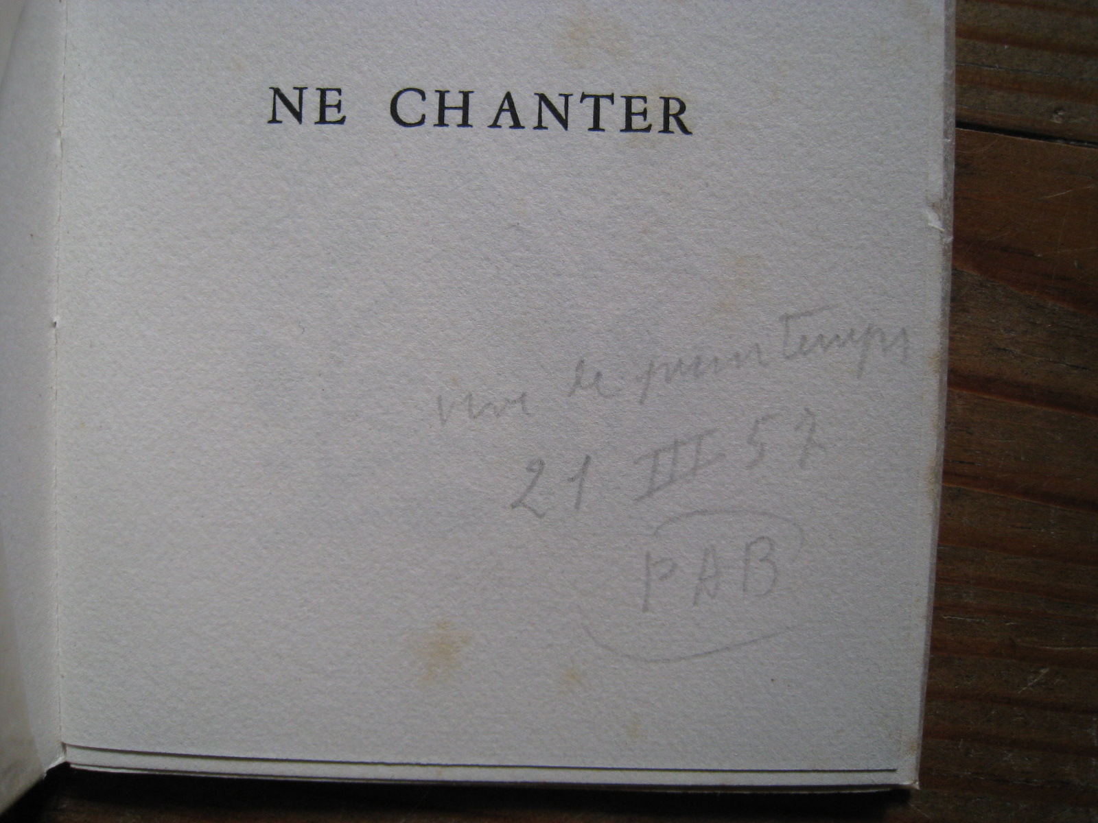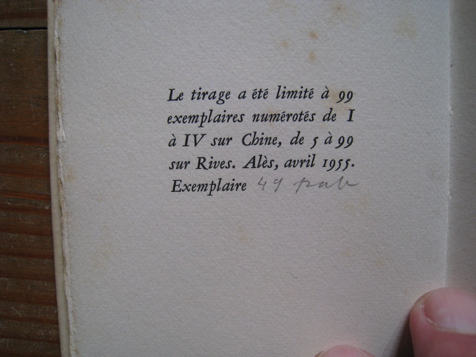 Pierre André Benoit ( 1921-1993), PAB de son nom d' éditeur a réalisé près de 800 livres dont l' originalité tient au petit format. Parallèlement, il a constitué une collection de peintures, dessins, gravures, sculptures à l' origine de la création du Musée Bibliothèque Pierre André Benoit à Alès. Dès 1941, PAB écrit, peint et dessine. A partir de 1946 et jusqu’en 1965, il se consacre entièrement à l’imprimerie. Il compose toutes ses éditions typographiques sur une presse installée dans son appartement à Alès. En 1949, il commence à utiliser la gravure sur celluloïd ce qui lui permet de faire lui-même les tirages et de réaliser le livre en entier. Cette technique amuse certains des artistes avec qui PAB travaille : Picasso, Masson, Hugo, Miro... alors que Braque préfère une deuxième technique mise au point en 1959 par Pierre André Benoit, la cartalégraphie ( cartons découpés et encrés). En 1970, Pierre André Benoit se replie au Château Moderne à Rivières de Theyrargues, il simplifie encore les techniques d’impression et illustre de plus en plus lui-même les ouvrages. Quelques artistes continuent pourtant à travailler avec lui, notamment Bryen, Hugo, Alechinsky, Steffens, Cortot, jusqu’à sa mort en janvier 1993. Son activité éditoriale est foisonnante, elle révèle la richesse et la diversité de ses liens d’amitié et de travail avec les artistes et les poètes, Arp, Braque, Miró, Picabia, Picasso, Sima, Survage, Ubac, Vieira da Silva… , Rose Adler, Alechinsky, E. Boissonnas, Breton, Char, Claudel, Dubuffet, Duchamp, Eluard, Frenaud, Jouhandeau, Paulhan, Satie, Seuphor, Tzara, Valéry… pour ne citer que quelques uns. Entremêler poésie et peinture « pour ne faire qu'une voix à plus longue portée », avancer dans l'unité, telle est son ambition. Il défend la polyvalence « Typographe, metteur en page, imprimeur, etc... ». Il plébiscite la rapidité de la réalisation, la sobriété des moyens, l'esprit du jeu. Il déclare ses maladresses, dévoile son projet et éclaire le but « chaque fois inventer une unité en maîtrisant pour elle tous les moyens. »